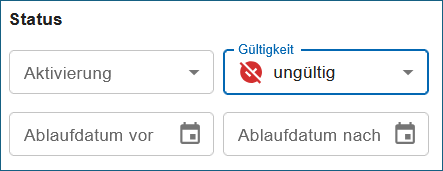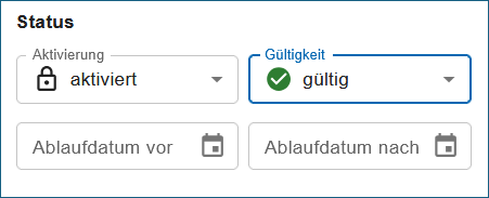 Hier können Sie die Suche auf Lizenzen einschränken, die in einem bestimmten Zeitraum importiert bzw. zugewiesen wurden. Es ist eine „von – bis Suche“, d.h. Sie müssen als Spanne mind. 2 Tage als Zeitraum angeben.
